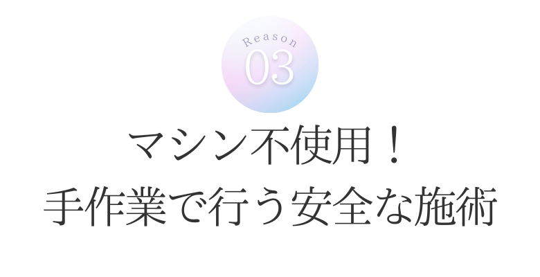 当サロンでは施術すべてを手作業で丁寧に行ないます。