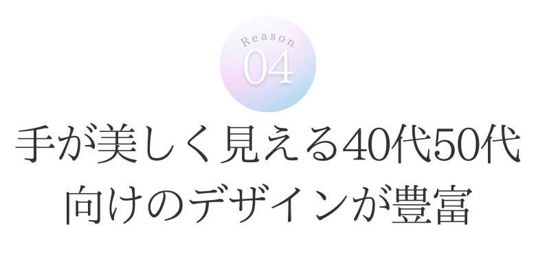 年齢を重ねた大人女性にぴったりなおすすめデザインを多数ご用意しています。