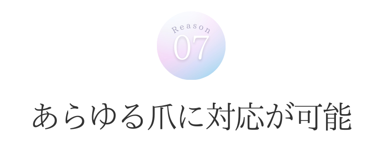 当サロンは、爪の状態やお悩みに合わせた『オーダーメイド施術』を行なっているため、幅広い爪に対応ができます。